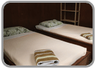 Twenty two wooden chalets, south from the Tekek jetty, have both fans and AC plus cold water showers.
